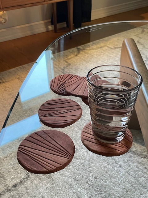 Nämä lasinaluset tein DAS:n puukuitua sisältävästä massasta. Massa oli melkoisen hankalaa käsiteltävää :(.