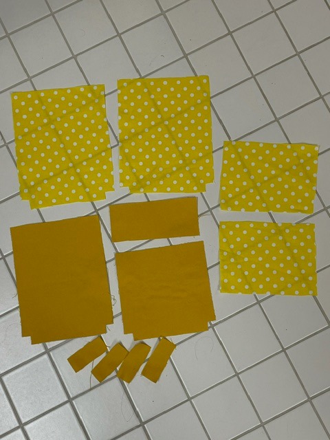 1. Leikkaa kankaat kaavojen mukaan. Silitä päällikankaisiin osiin tukikankaat kiinni.